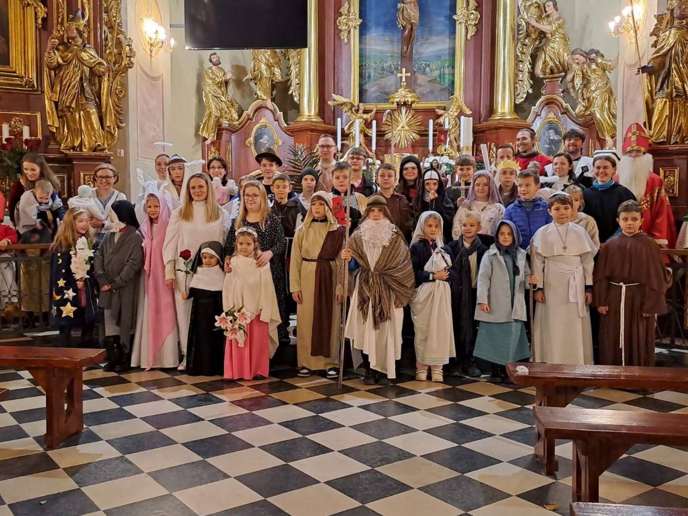 O godz. 16.30 z Rynku w stronę klasztoru oo. Bernardynów wyruszył radosny, barwny pochód, w którym licznie wzięły udział dzieci wraz z rodzicami, przebrani w stroje świętych lub błogosławionych. Po przybyciu do Sanktuarium miała miejsce prezentacja poszczególnych świętych oraz konkurs na najpiękniejszy strój. Następnie celebrowano ostatnie październikowe nabożeństwo różańcowe, po którym w sali audiowizualnej odbył się poczęstunek dla wszystkich uczestników spotkania. Organizatorem wydarzenia był Parafialny Klub Sportowy LSO Alwernia oraz nasz klasztor.