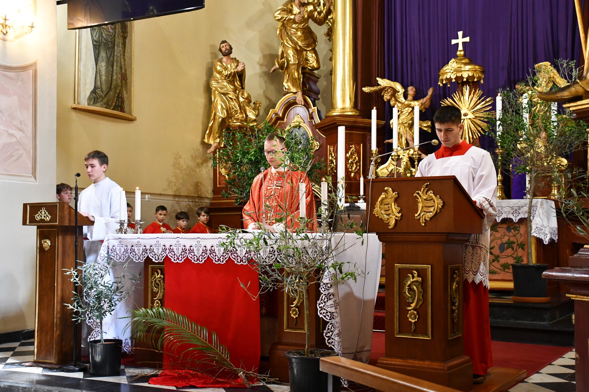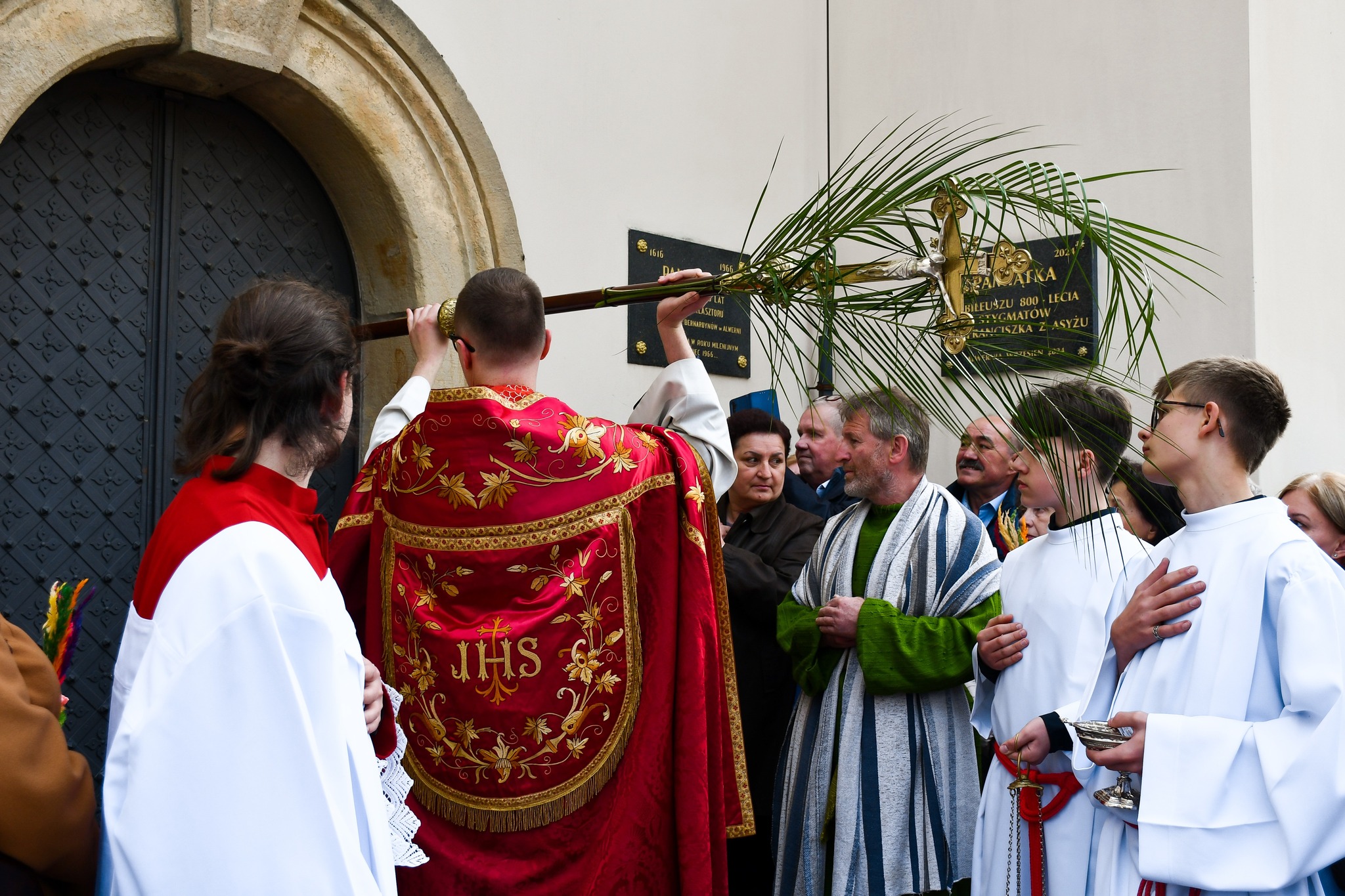 Scenami wjazdu Pana Jezusa na osiołku do Jerozolimy i wypędzenia przekupniów ze świątyni rozpoczęliśmy w alwernijskim Sanktuarium uroczyste obchody Wielkiego Tygodnia. Na Placu Rajskim przed kościołem odbyło się poświęcenie palm oraz barwna procesja z gałązkami do kościoła. Zanim jednak pochód wszedł do świątyni, o. Filip, według dawnej tradycji, uderzył trzykrotnie drzewcem krzyża procesyjnego w zamknięte drzwi kościoła, które następnie otworzyły się przed wszystkimi zebranymi. Obrzęd ten przypomina, że Chrystus swoją męką i śmiercią na krzyżu otworzył nam drzwi do nieba, której przedsionkiem są nasze ziemskie kościoły. Następnie celebrowana była Eucharystia z odczytaniem opisu Męki naszego Pana Jezusa Chrystusa według św. Łukasza.