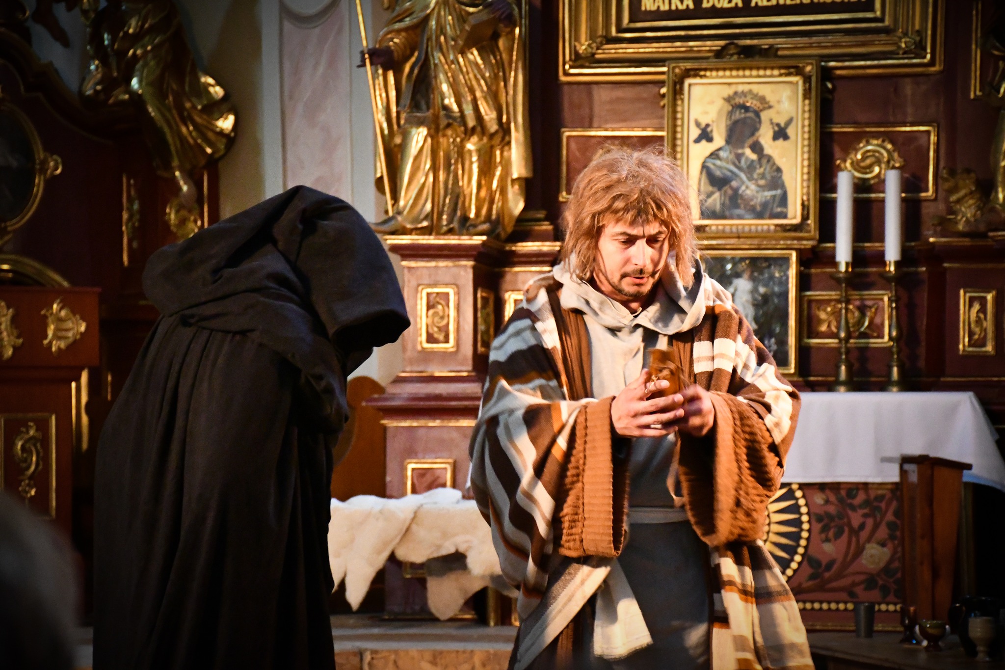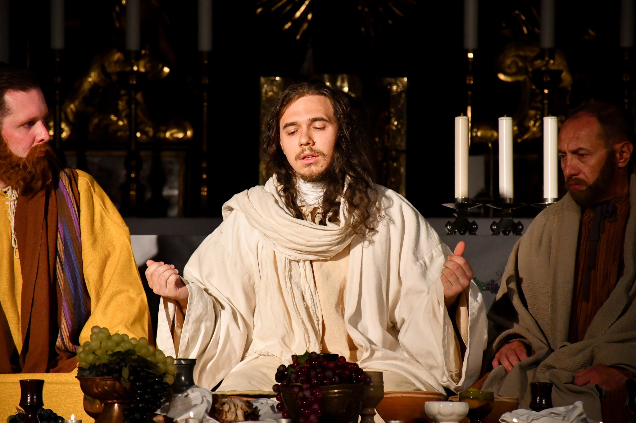 W wielkoczwartkowy wieczór, tuż przed rozpoczęciem celebrowania świętych dni Triduum Paschalnego, Grupa Misteryjna ,,Pascha” działająca przy naszym klasztorze, wystawiła sceny misteryjne przybliżające najważniejsze wydarzenia Wielkiego Czwartku: zdradę Judasza, Ostatnią Wieczerzę oraz zapowiedź zaparcia się Piotra.