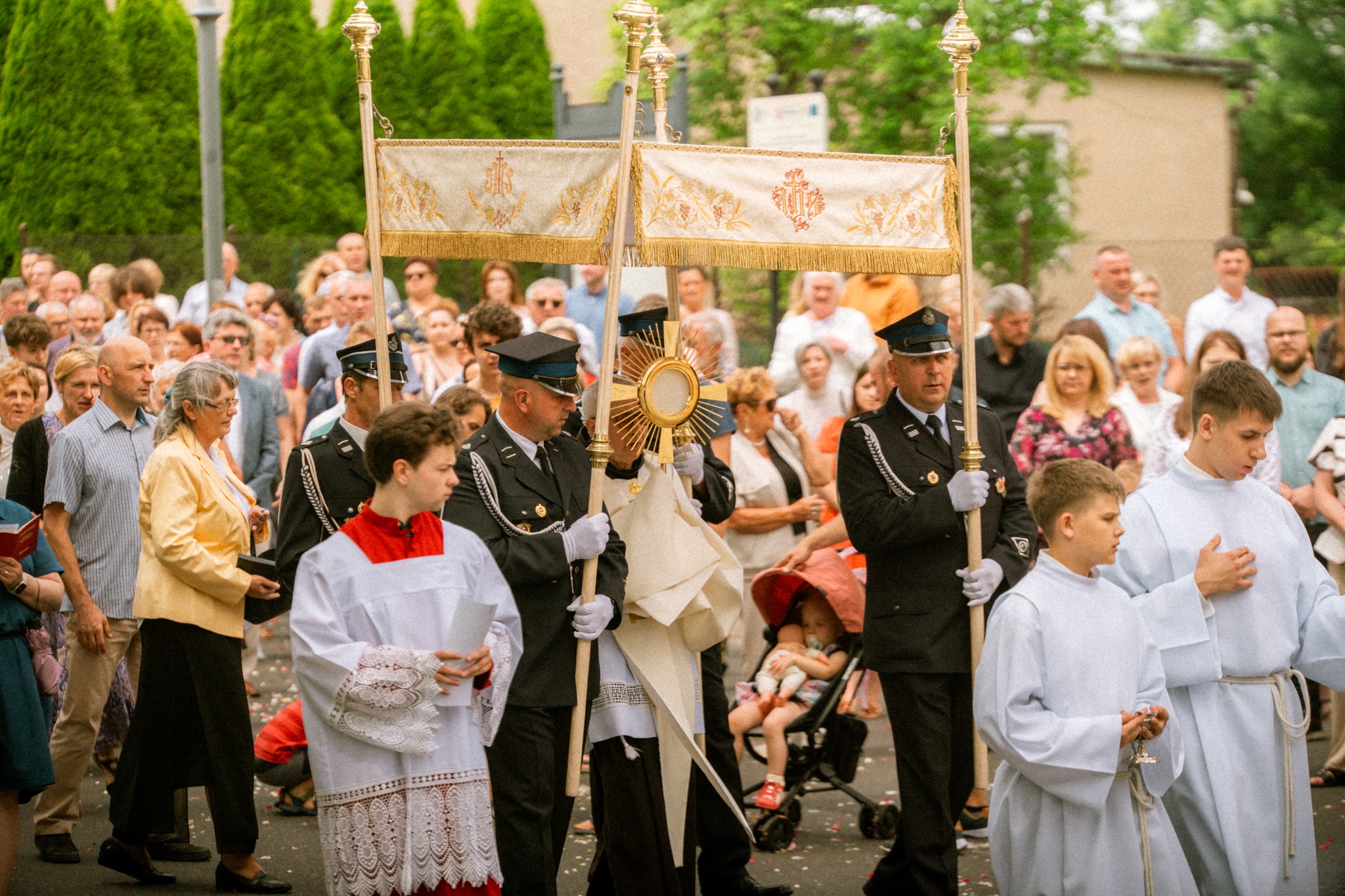 Serdecznie dziękujemy wszystkim, którzy zaangażowali się w przygotowanie dzisiejszej uroczystości: LSO Alwernia, FMO Alwernia, Policji i OSP w Alwerni, budowniczym ołtarzy, dzieciom pierwszokomunijnym sypiącym kwiatki i dzwoniącym dzwonkami, osobom niosącym feretrony i sztandary, scholi parafialnej, p. Organistce oraz wszystkim, którzy w ten piękny dzień uczestniczyli w procesji Bożego Ciała, świadcząc o swojej wierze w realną obecność Jezusa między nami pod postacią Chleba i Wina.